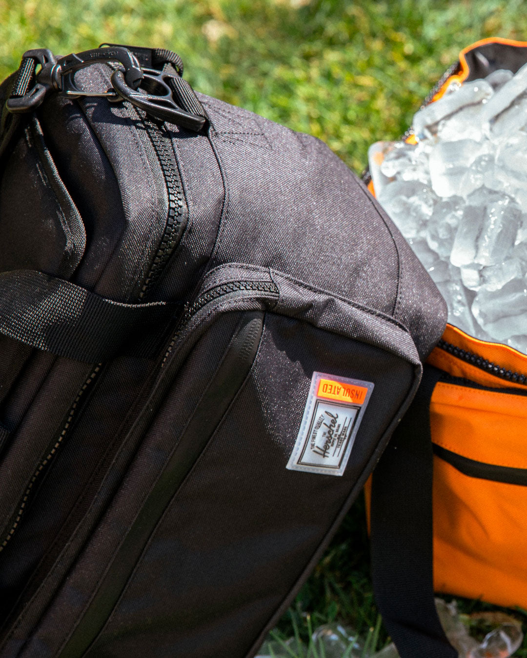 Vancover based brand Herschel keeps us ready for summer! The insulated Pop Quiz Cooler comes in both 12 pack and 30 pack and is perfect for summer picnics and beach days! Get ready for boozy days at the beach. 32L or 12L, black or sun orange - your choice. With a recycled main body and coated base this padded insulated back keeps your beers cold all day. It even got a key clip bottle opener!
