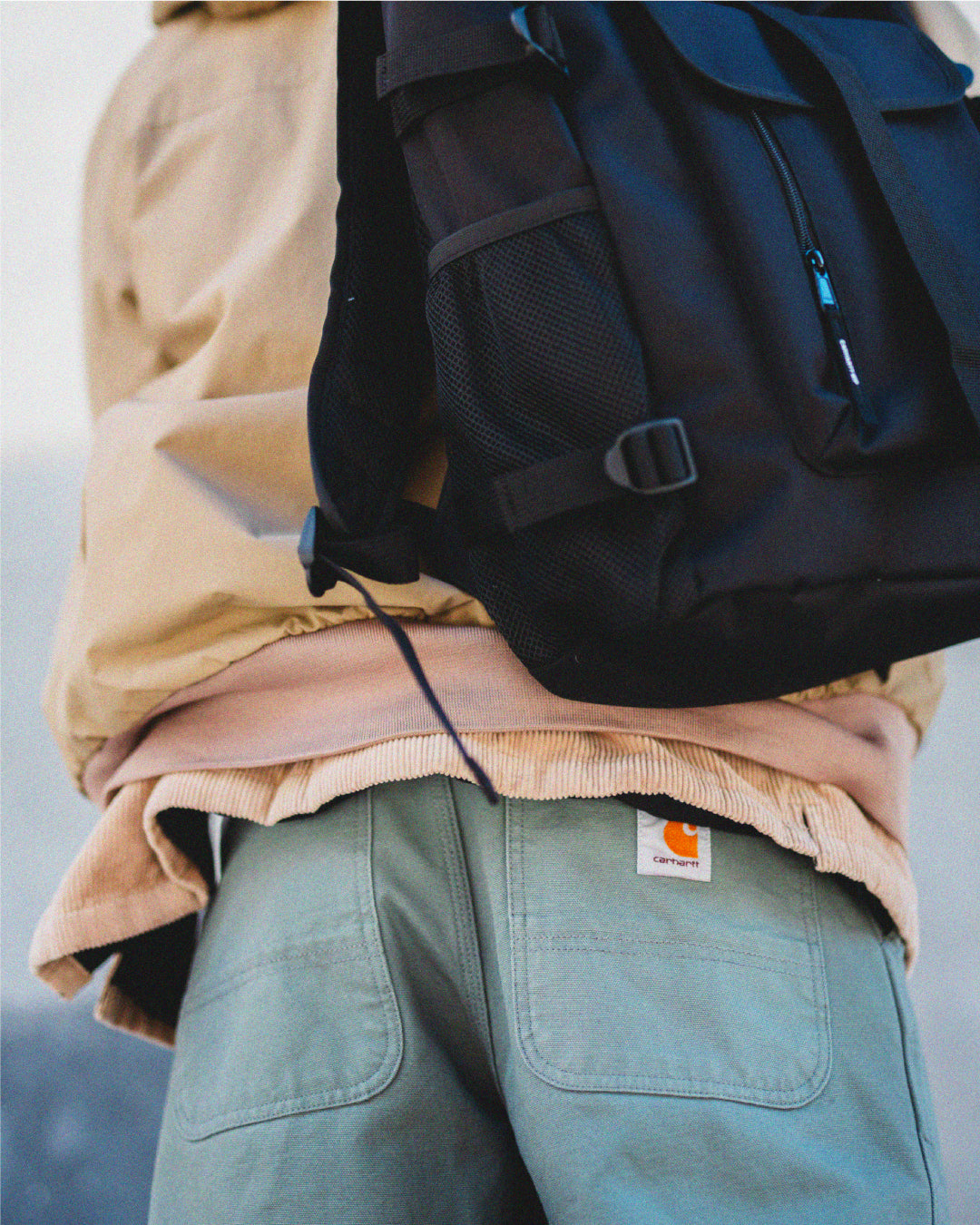 A brand known for its durability and never going out of style items, we put together shades of beige and green in this one. With the Hooded Sail Jacket and its water repellent teflon fabric and fleece lining you are ready for the cold that is about to hit. Layered with Whitsome Shirt Jac and the classic Pocket T-shirt.