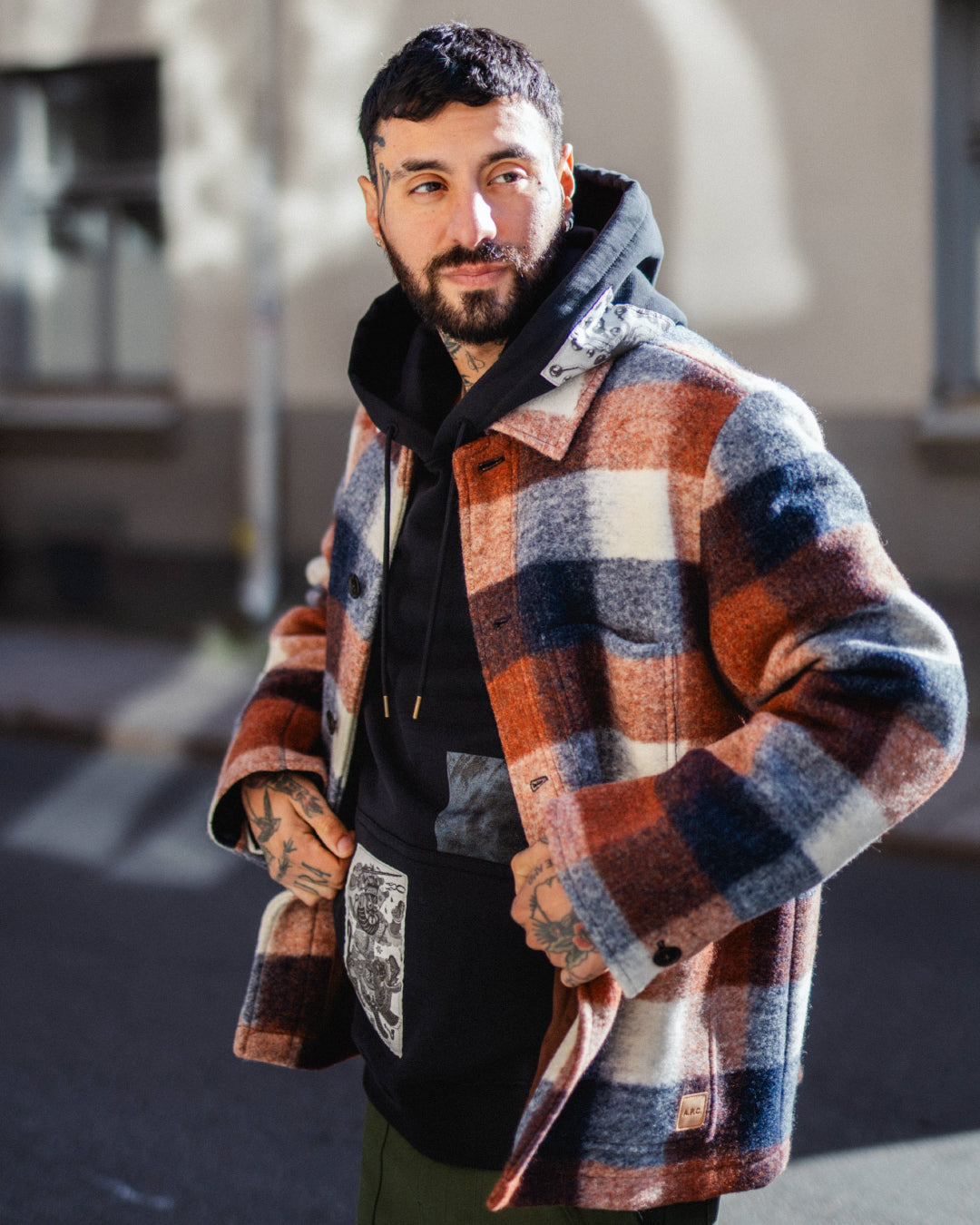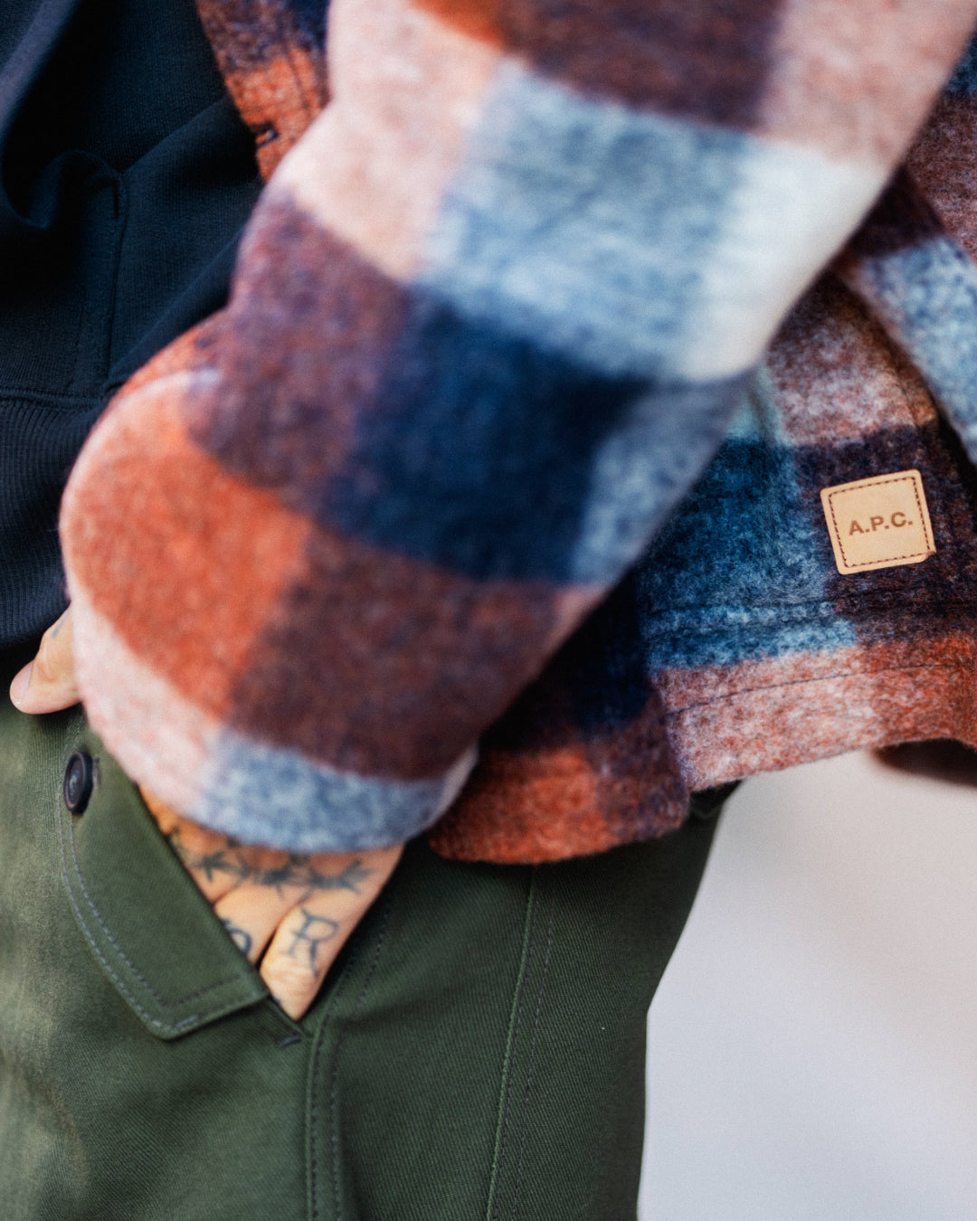 Check out our top picks featuring ÉTUDES, A.P.C., MAISON KITSUNÉ, and DR MARTENS for the perfect fall fits. This fit got the ÉTUDES Racing Batia Suter Hoodie in Black that comes in a heavy organic cotton together with the A.P.C Veste Emile in a checked brushed wool mix.