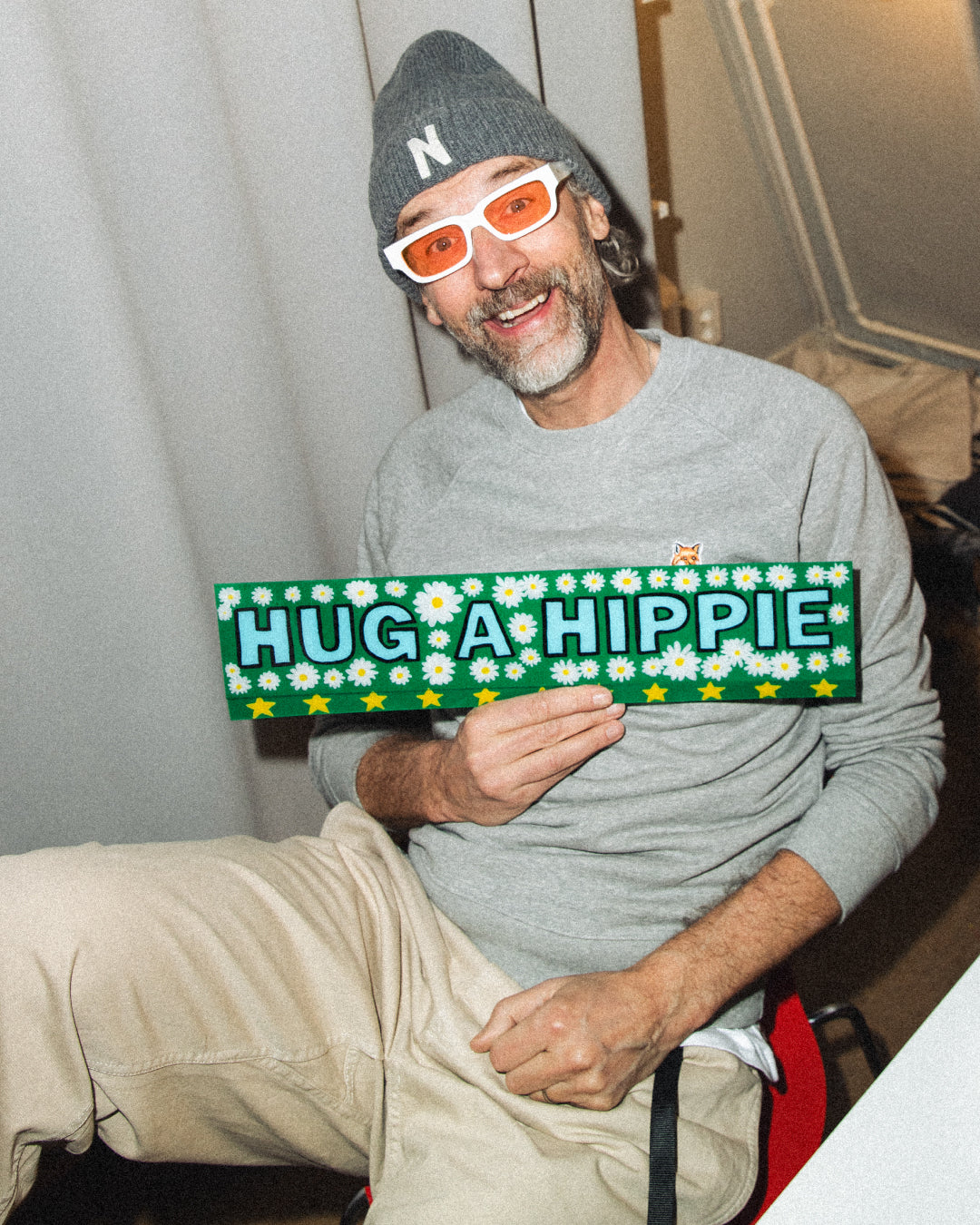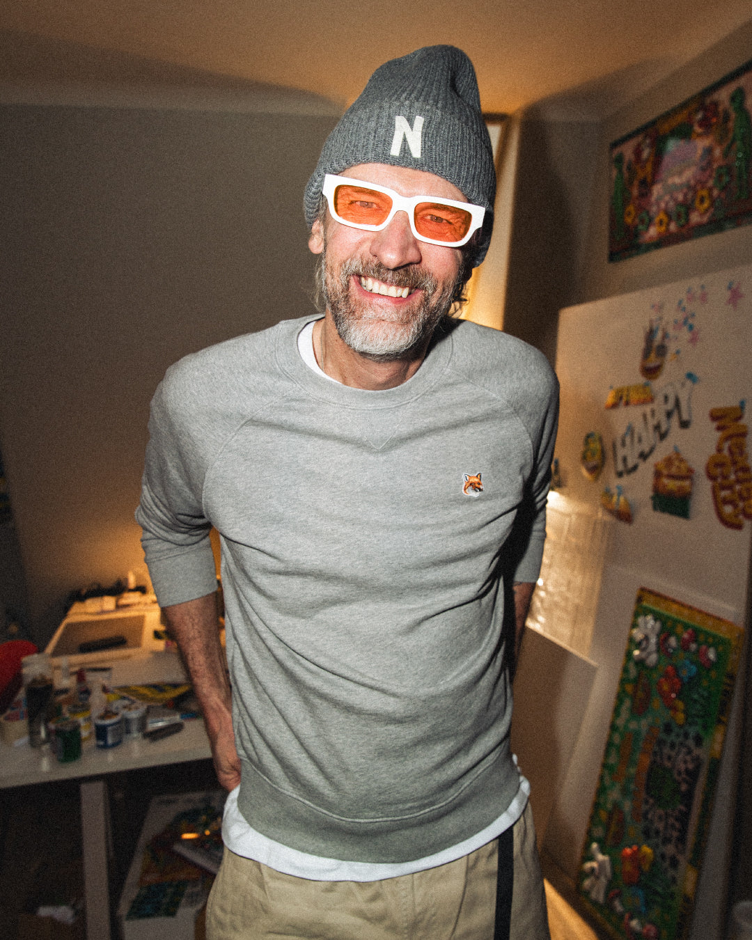 Nous avons porté un tee-shirt blanc ICE CREAM Cre wneck associé à un sweat-shirt Fox Head de Maison Kitsuné et à un pantalon Gramicci classique en Us Chino.