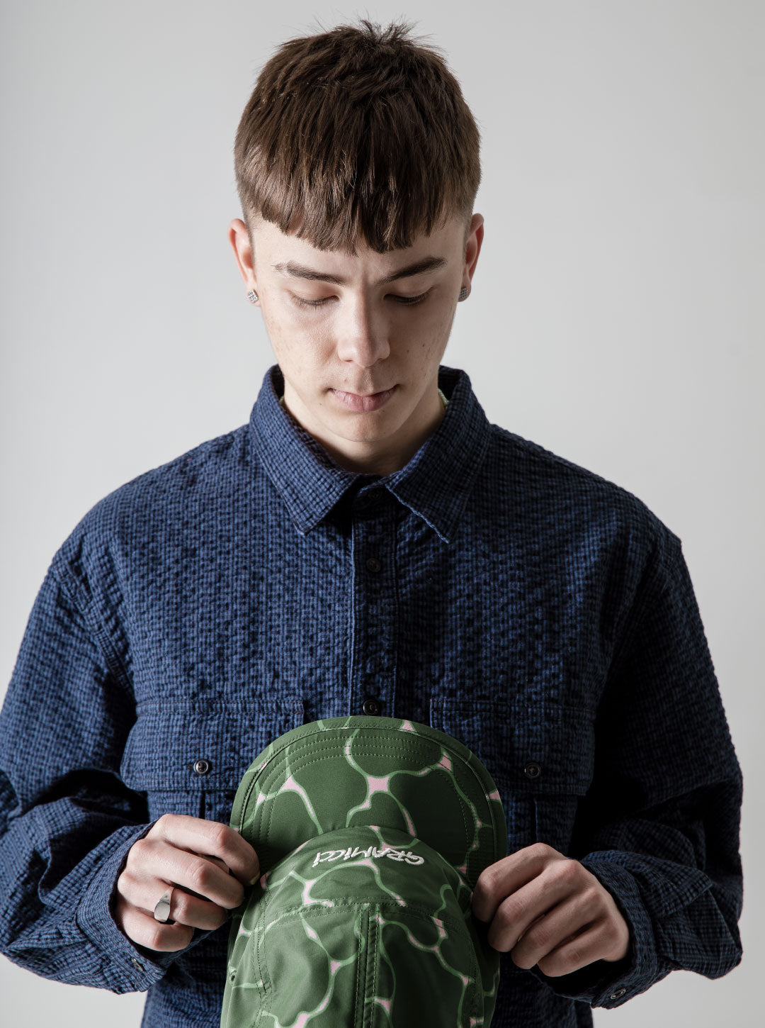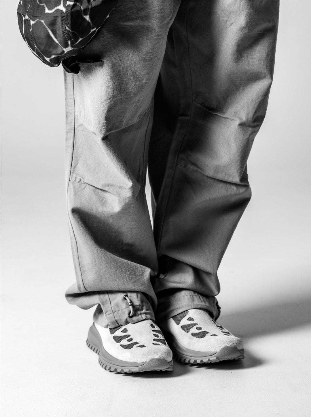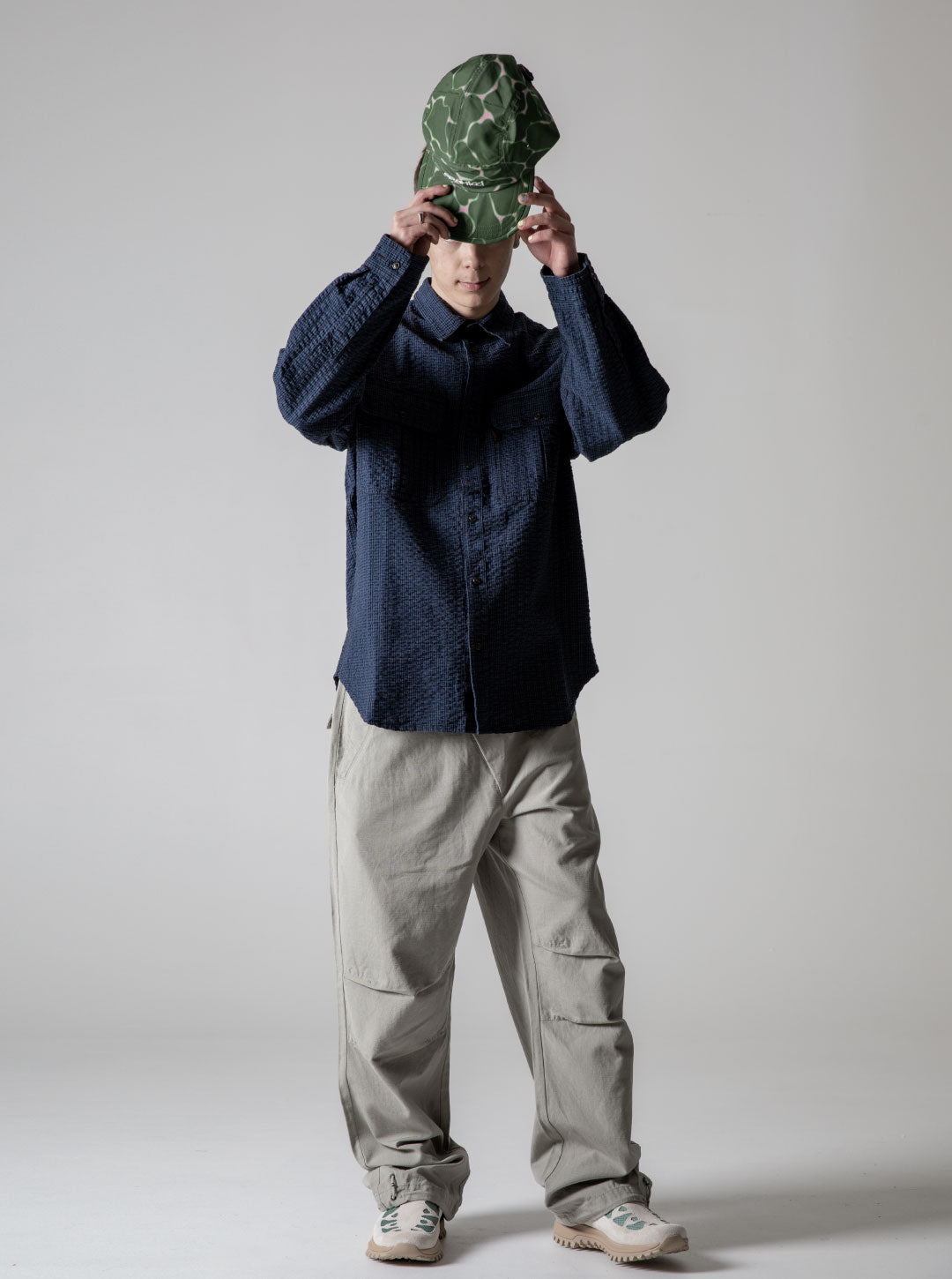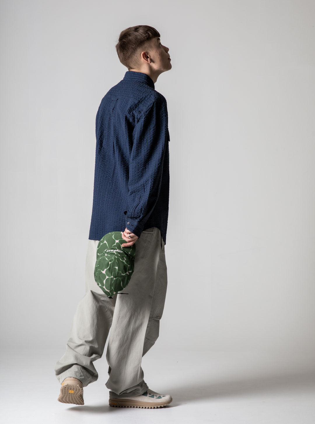 Poi abbiamo i pantaloni da ginnastica MAHARISHI in colore Silver Sage! Questi pantaloni hanno una vestibilità e un colore perfetti. Naturalmente abbiamo dovuto aggiungere la camicia GRAMICCI O.G Seersucker Canyon - chi non ama un buon tessuto seersucker? Per finire, un po' di verde, le slip-on DIEMME Maggiore e il cappellino GRAMICCI Jet!